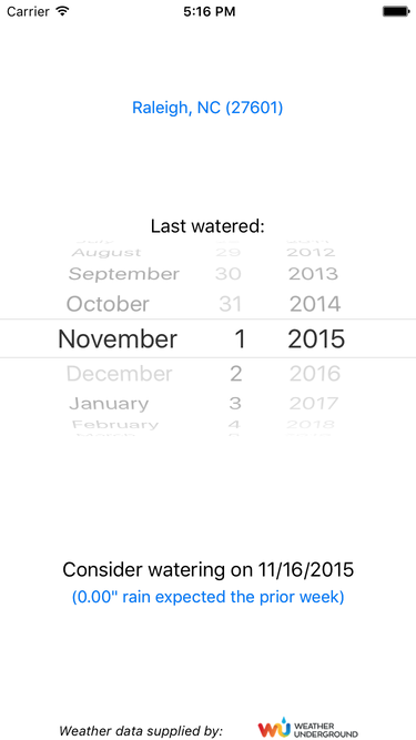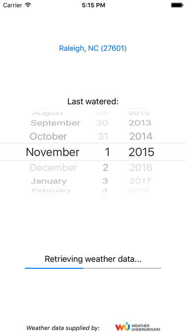 While weather information is being retrieved, you can specify when you last watered your lawn: